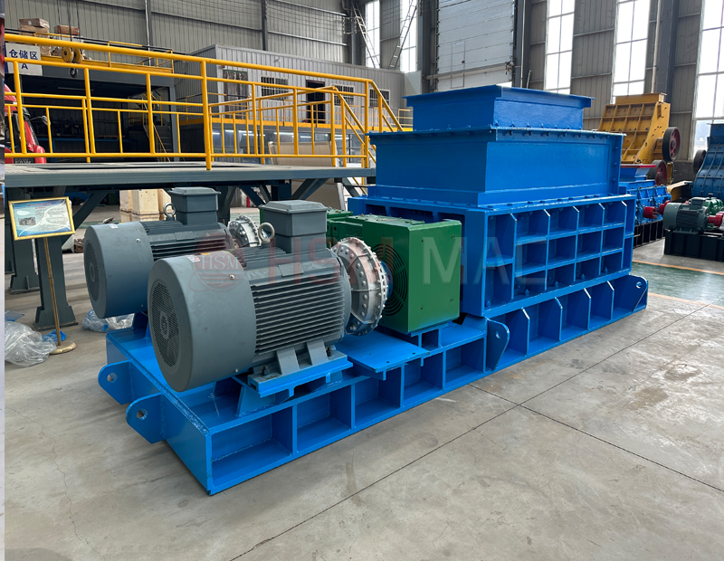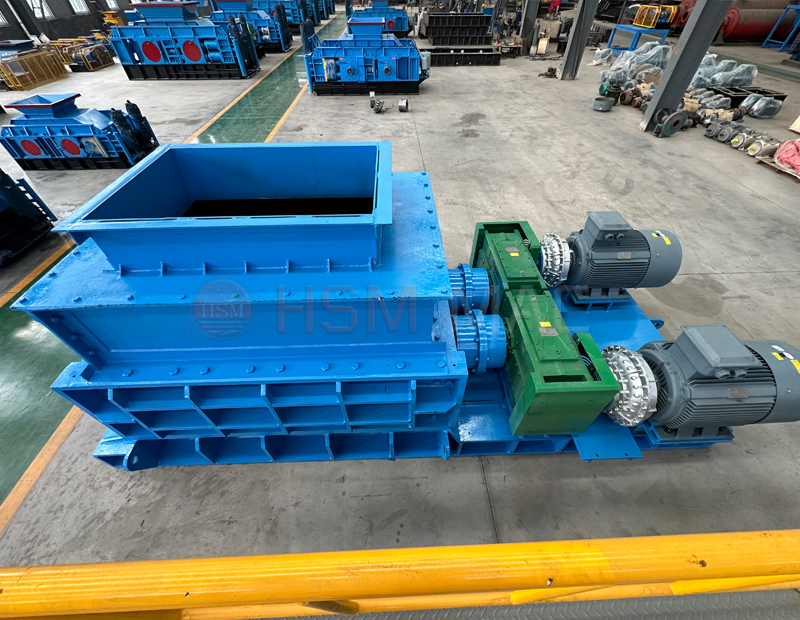 分級式齒輥破碎機由兩臺電動機將動力經(jīng)減速器減速后分別驅(qū)動兩平行安裝的齒輥相向旋轉(zhuǎn),當(dāng)物料落入分級破碎機雙輥之間時,帶有螺旋齒牙或刀形齒板首先將物料篩分,小于排料粒度的顆粒直接通過而不需要破碎,進入排料溜槽,在垂直應(yīng)力或剪切力的共同作用下,大塊物料受齒輥齒牙的劈裂、剪切,拉伸被破碎,從排料口排出。